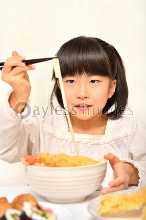 天ぷらうどんを食べる女の子 ストックフォトの定額制ペイレスイメージズ
